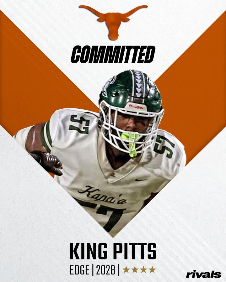 Texas Longhorns Land Commitment from 4-Star Edge Rusher King Pitts AUSTIN, TX — The Texas Longhorns have made a major splash on the recruiting trail, securing a commitment from King Pitts, the highly touted four-star edge rusher out of Cardinal Newman High School in Santa Rosa, California. Pitts, a…